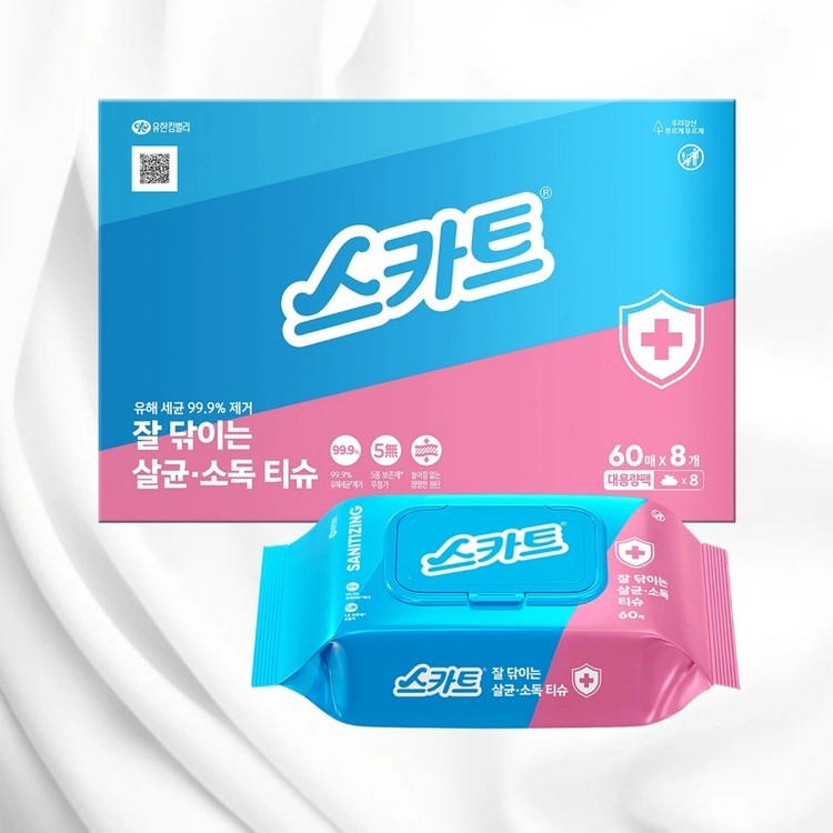 - 제품 구성: 스카트 잘 닦이는 살균소독티슈 60매 x 8팩