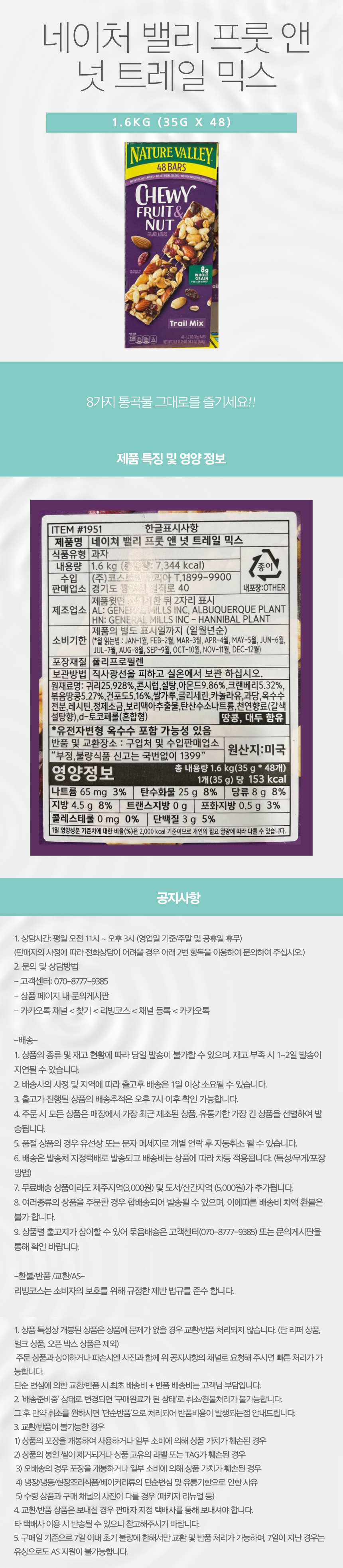 Nature Valley 트레일 믹스 바 1.6kg / 35g x 48
