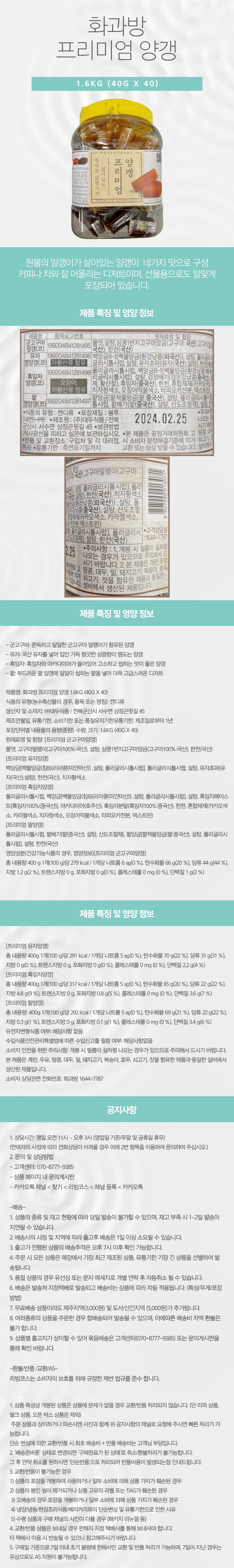 1,600g (군고구마양갱 40 g X 10개, 유자영양갱 40 g X 10개, 흑임자양갱 40 g X 10개, 팥영양양갱 40 g X 10개)