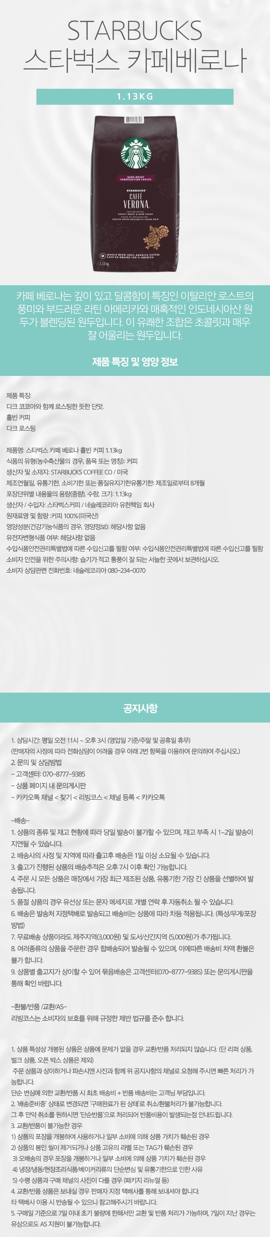 스타벅스 카페 베로나 홀빈 커피 1.13kg