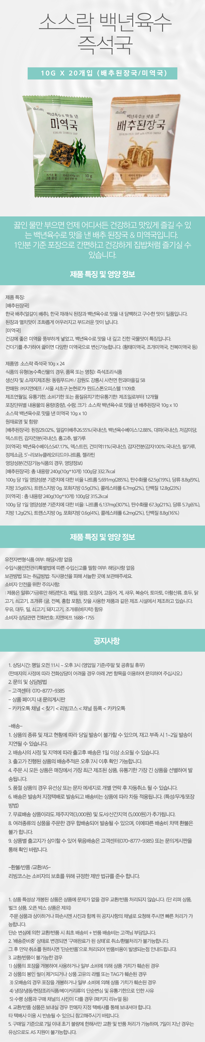 소스락 백년육수로 맛을 낸 배추된장국 10g x 10 소스락 백년육수로 맛을 낸 미역국 10g x 10