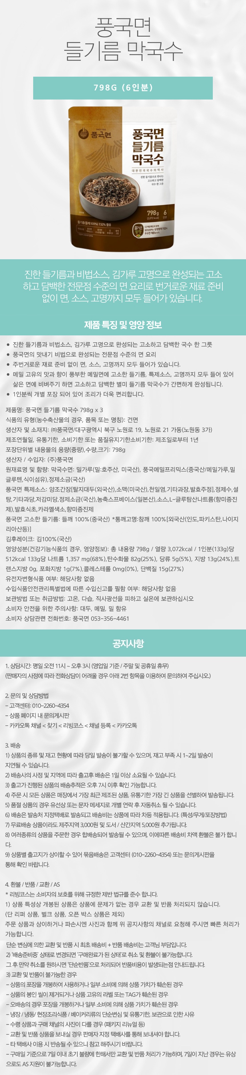풍국면 고소한 들기름 : 들깨 100%(중국산) *통깨고명:참깨 100%[외국산(인도,파키스탄,나이지리아산등)]