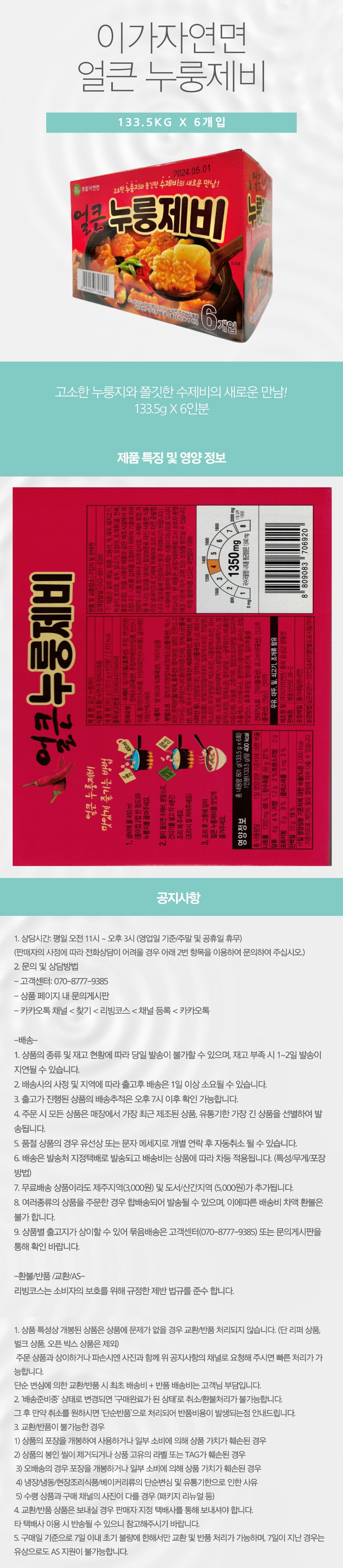 이가자연면 얼큰 누룽제비 133.5g x 6