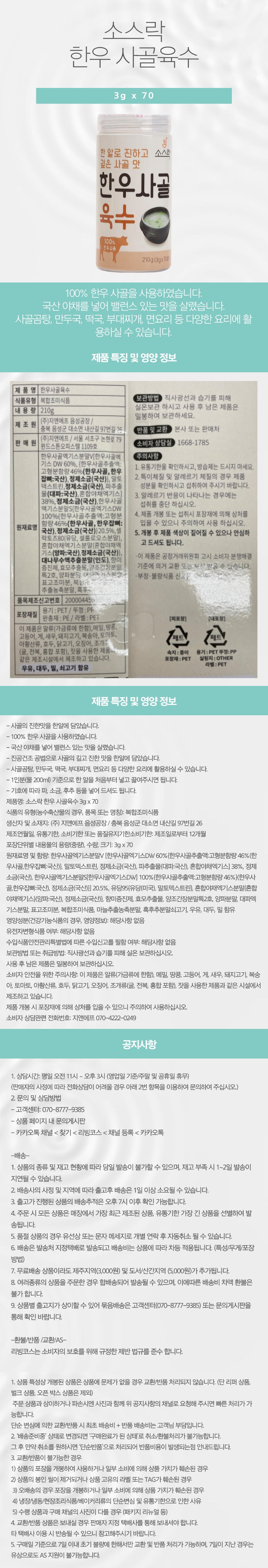 - 100% 한우 사골을 사용하였습니다.