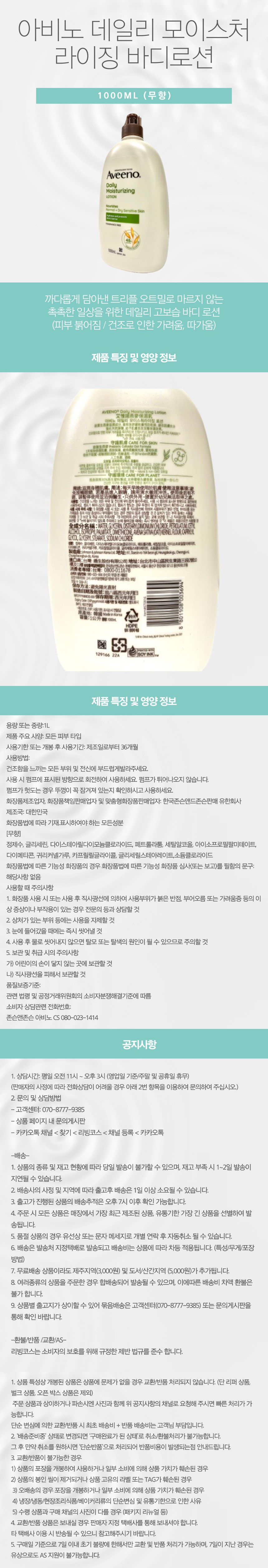 정제수, 글리세린, 다이스테아릴다이모늄클로라이드, 페트롤라툼, 아이소프로필팔미테이트, 세틸알코올,다이메티콘, 귀리커넬가루, 벤질알코올, 향료, 소듐클로라이드, 리모넨, 리날룰, 헥실신남알