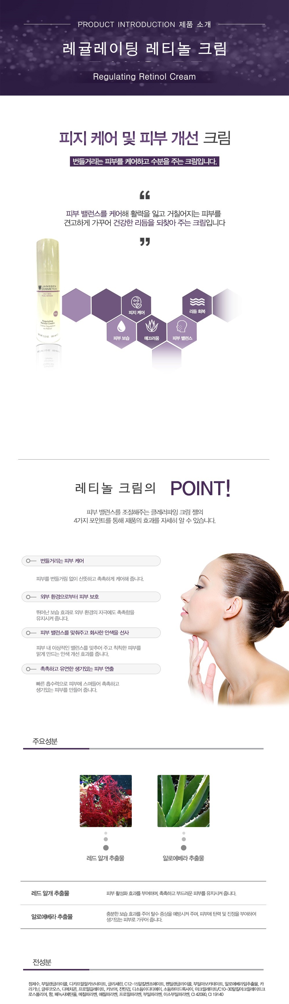 - 피부 내 유수분 밸런스를 효과적으로 유지시켜 주어 활력을 잃고 거칠어지는 올록볼록 피부를 견곻게 가꾸어 건강한 리듬을 되찾아 주는 크림입니다.