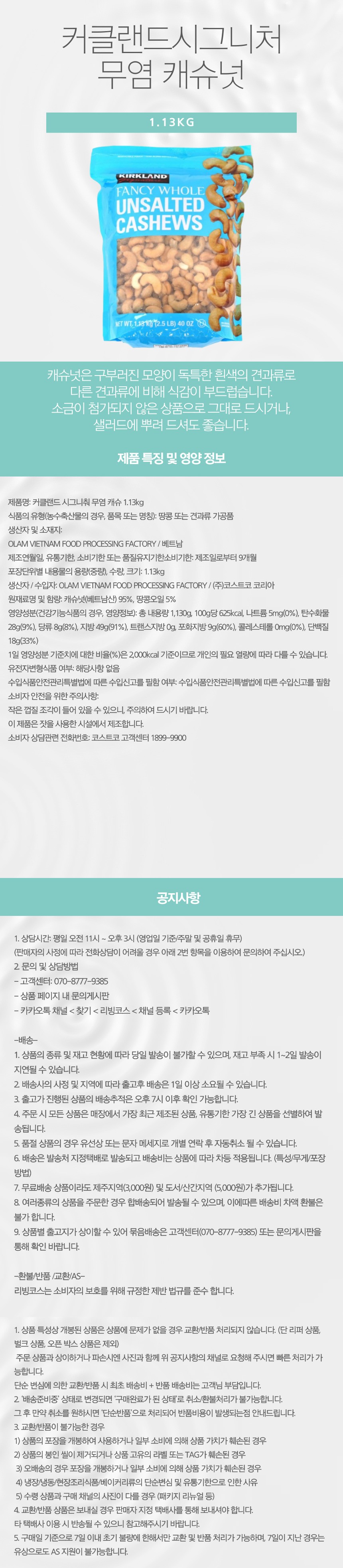 커클랜드 시그니춰 무염 캐슈 1.13kg