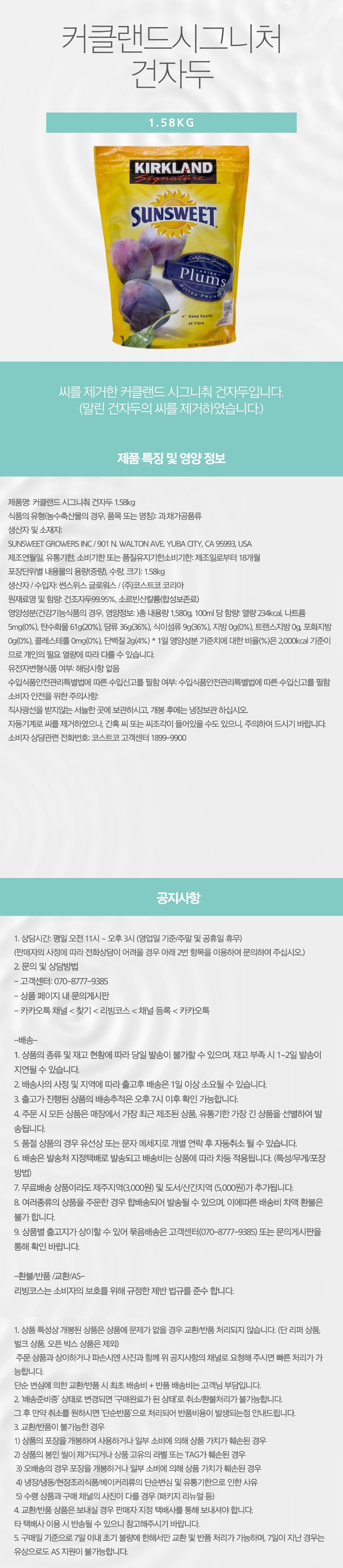 커클랜드 시그니춰 건자두 1.58kg