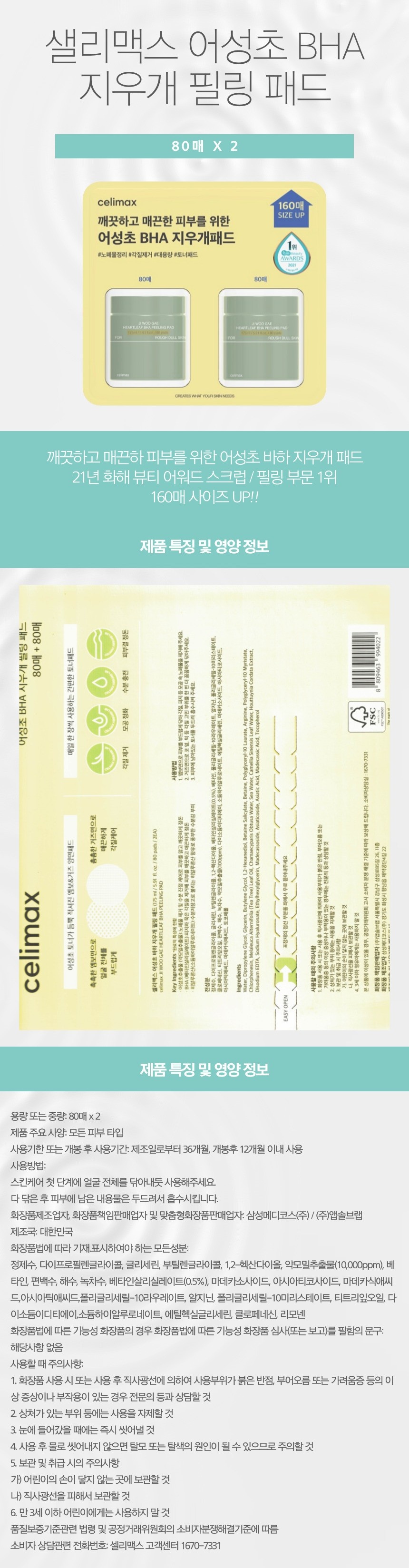 셀리맥스 어성초 BHA 지우개 필링 패드 80매 X 2 COSBESTMDHOT