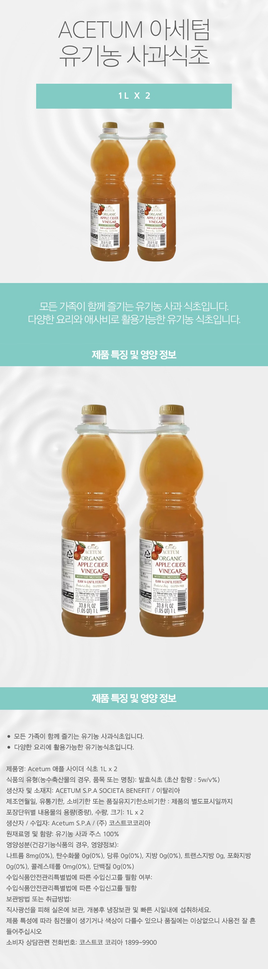 Acetum 애플 사이더 식초 1L x 2