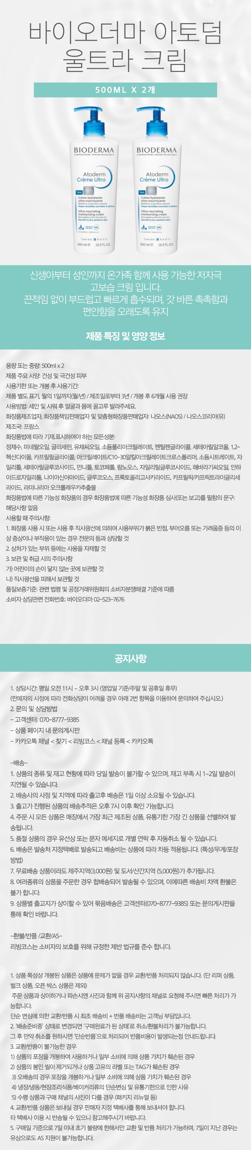 바이오더마 아토덤 울트라 크림 500ML X 2개 COS
