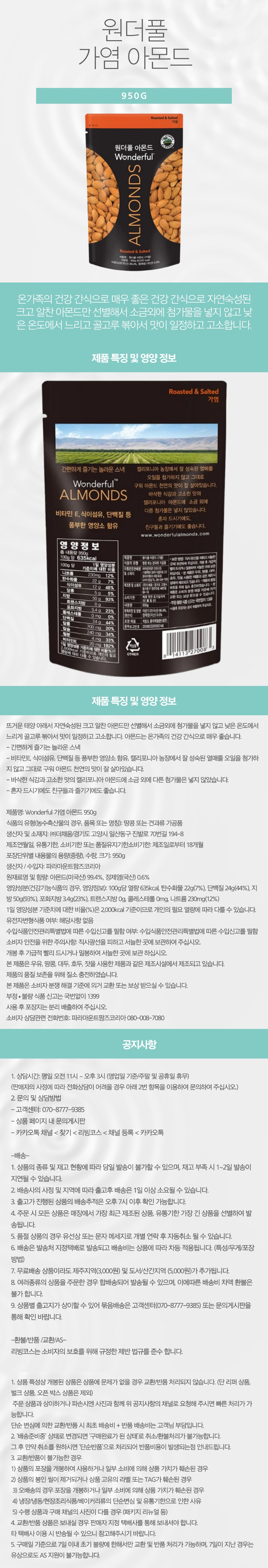 - 바삭한 식감과 고소한 맛의 캘리포니아 아몬드에 소금 외에 다른 첨가물은 넣지 않았습니다.