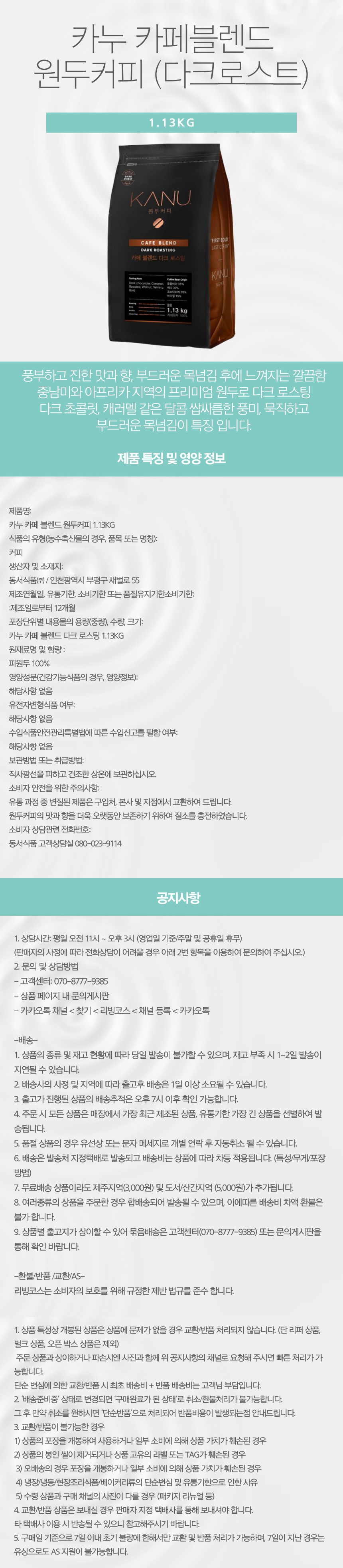 카누 카페블렌드 원두커피 다크로스트 1.13KG COS