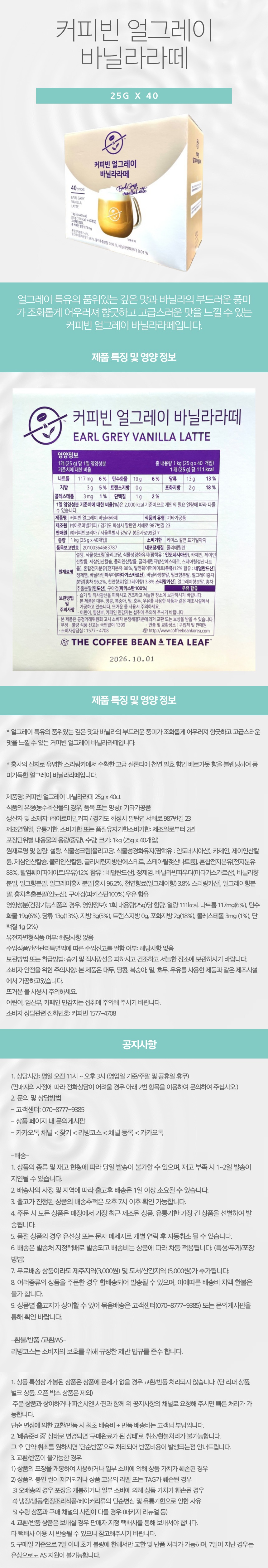 커피빈 얼그레이 바닐라라떼 25g x 40ct
