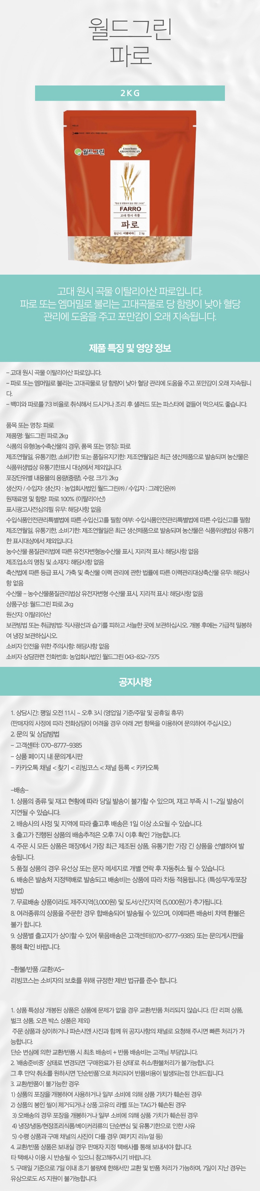 - 백미와 파로를 7:3 비율로 취식해서 드시거나 조리 후 샐러드 또는 파스타에 곁들어 먹으셔도 좋습니다.