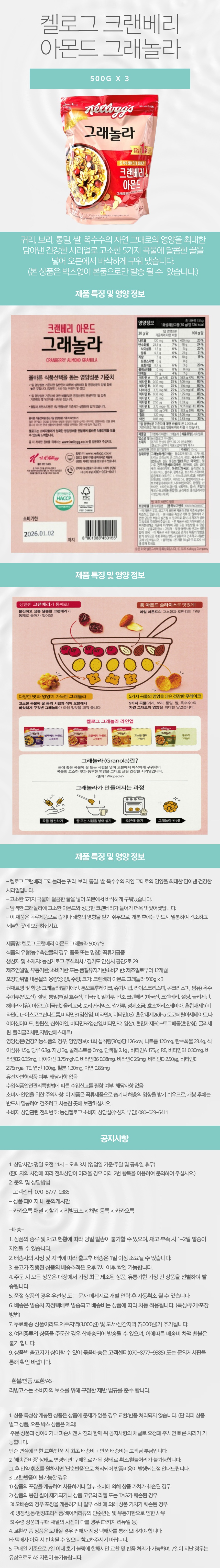 켈로그 크랜베리 아몬드 그래놀라 500g * 3