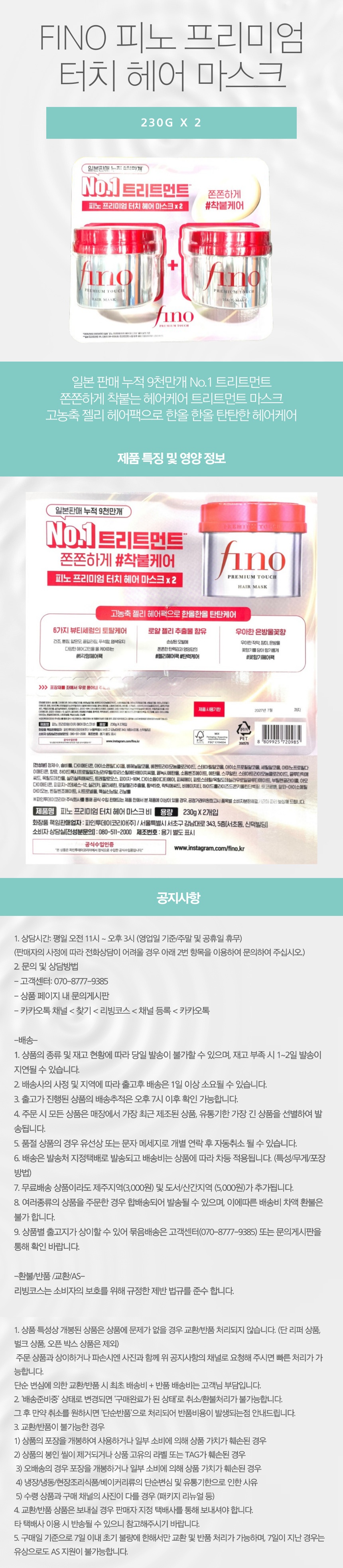 - 일본 누적 9천만개 판매된 No.1 피노 프리미엄 터치 헤어 마스크 트리트먼트