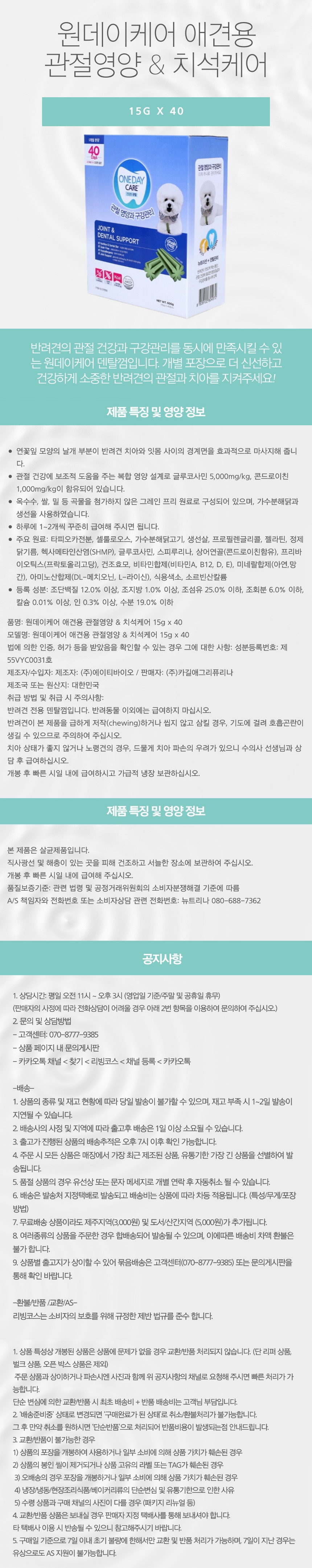 원데이케어 애견용 관절영양 & 치석케어 덴탈껌 15G X 40 COS