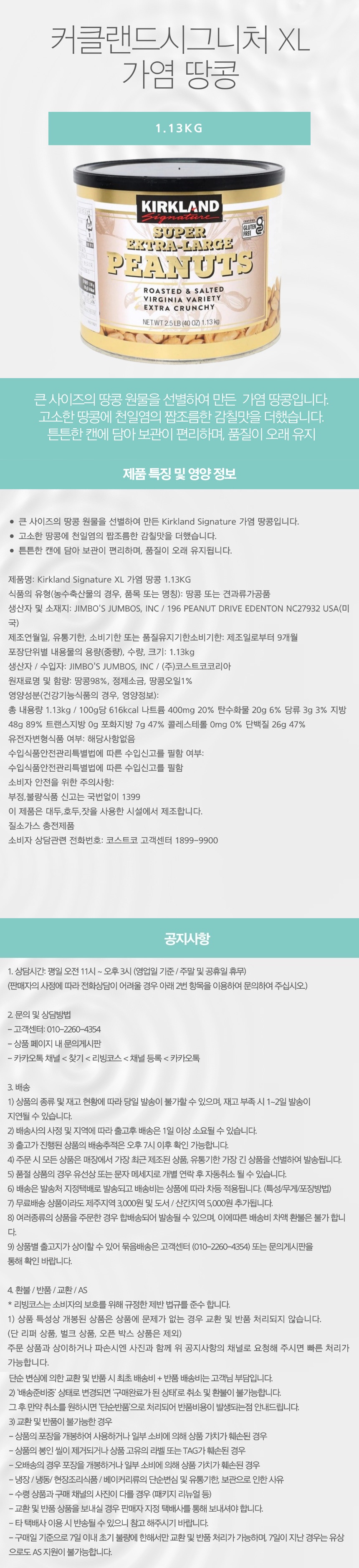 KIRKLAND SIGNATURE 커클랜드시그니처 XL 가염 땅콩 1.13KG