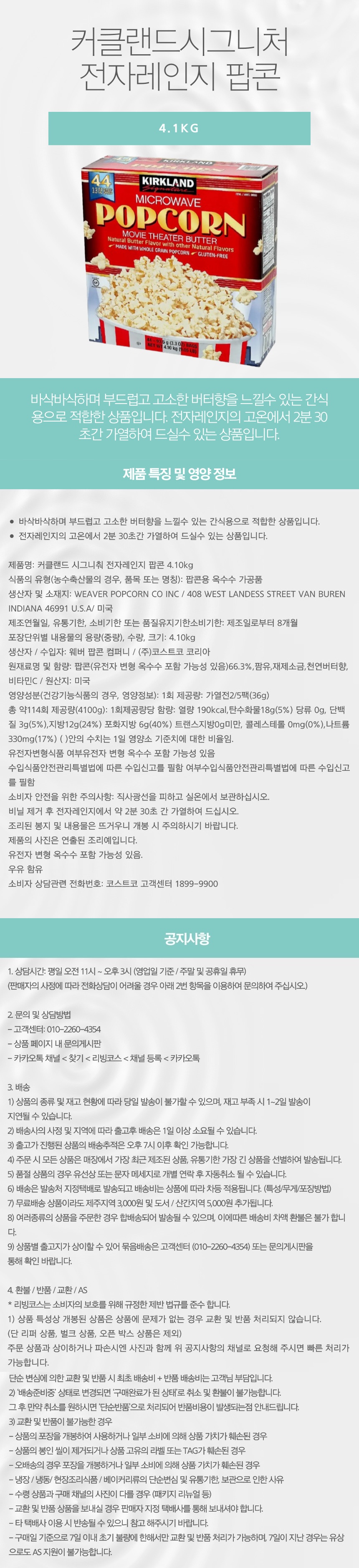 커클랜드 시그니춰 전자레인지 팝콘 4.10kg