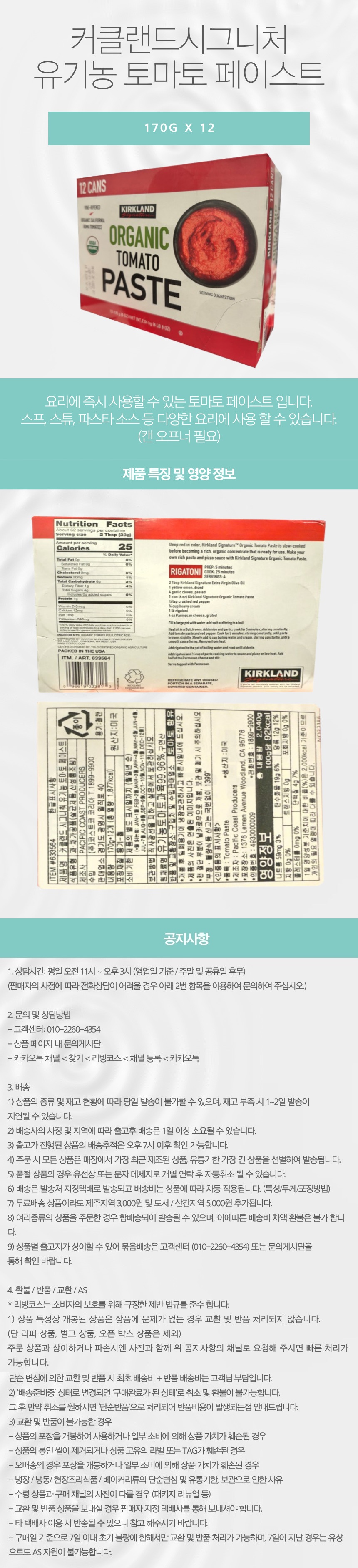 KIRKLAND SIGNATURE 커클랜드시그니처 유기농 토마토 페이스트 170G X 12 COS