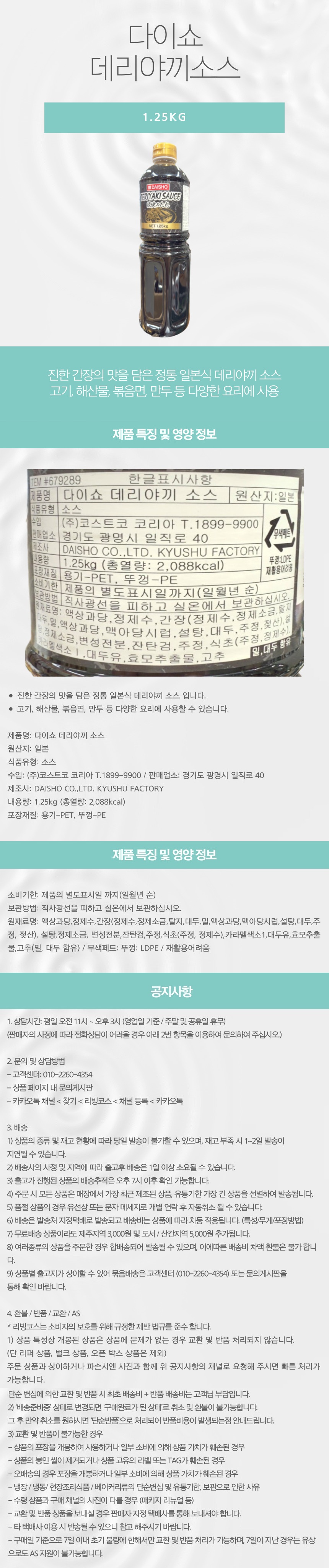DAISHO CO.,LTD. KYUSHU FACTORY / 일본 / 수입: (주)코스트코 코리아 T.1899-9900 / 판매업소: 경기도 광명시 일직로 40