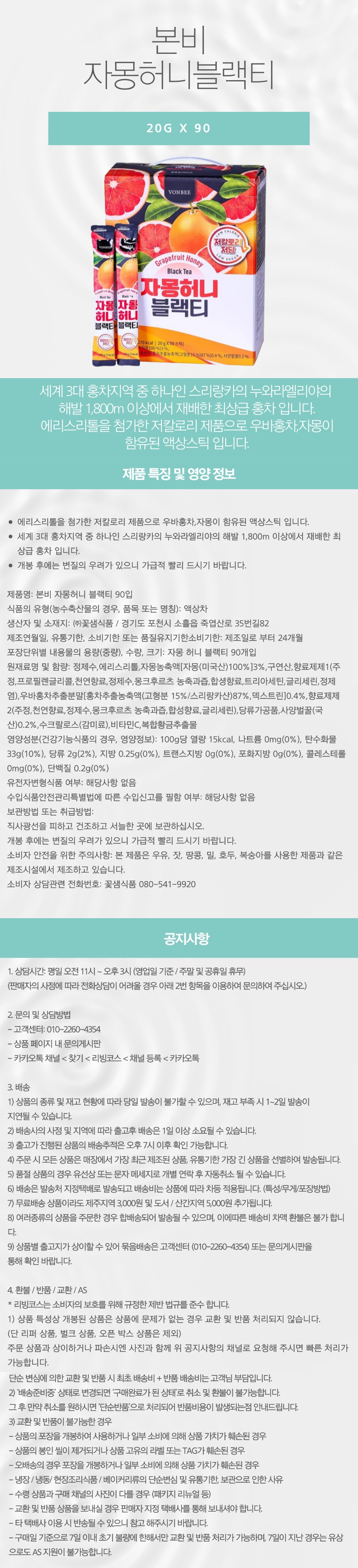정제수,에리스리톨,자몽농축액[자몽(미국산)100%]3%,구연산,향료제제1(주정,프로필렌글리콜,천연향료,정제수,몽크후르츠 농축과즙,합셩향료,트리아세틴,글리세린,정제염),우바홍차추출분말[홍차추출농축액(고형분 15%/스리랑카산)87%,덱스트린]0.4%,향료제제2(주정,천연향료,정제수,몽크후르츠 농축과즙,합성향료,글리세린),당류가공품,사양벌꿀(국산)0.2%,수크랄로스(감미료),비타민C,복합황금추출물