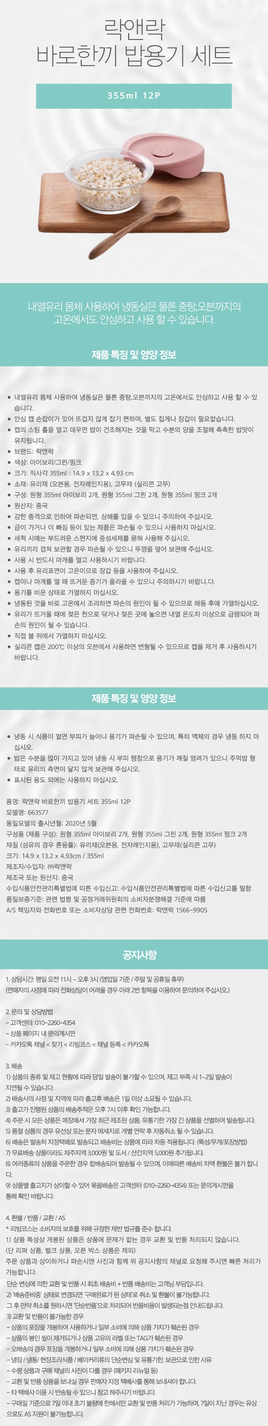 - 구성: 원형 355ml 아이보리 2개, 원형 355ml 그린 2개, 원형 355ml 핑크 2개