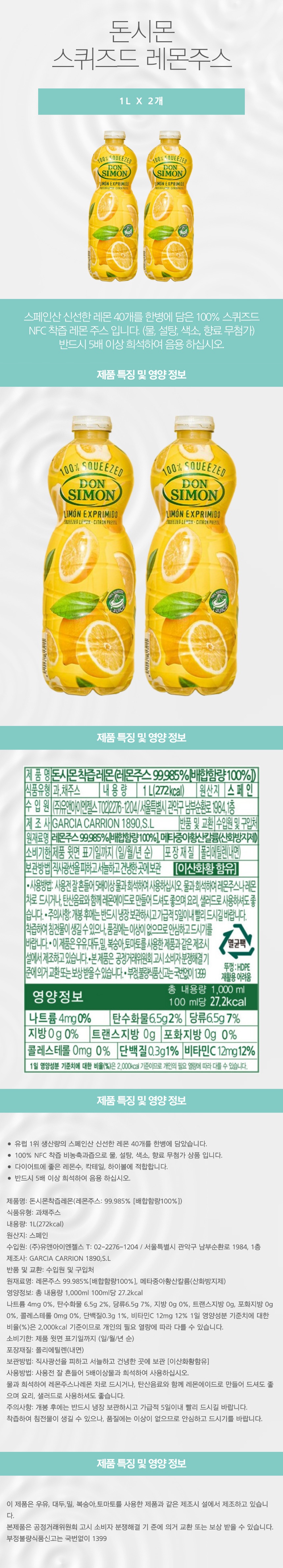 돈시몬착즙레몬(레몬주스: 99.985% [배합함량100%])