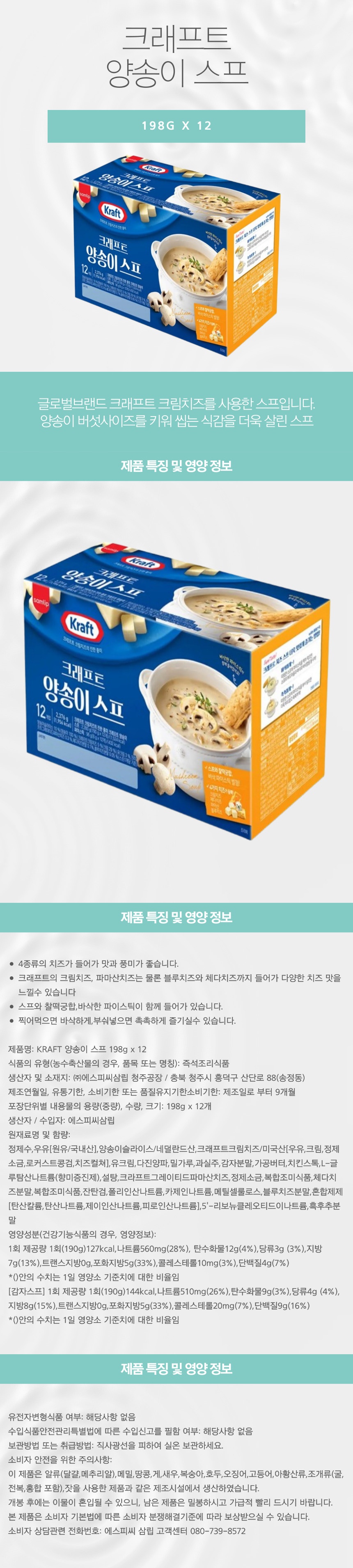 - 양송이 버섯사이즈를 키워 씹는 식감을 더욱 살린 크래프트 양송이스프 입니다.