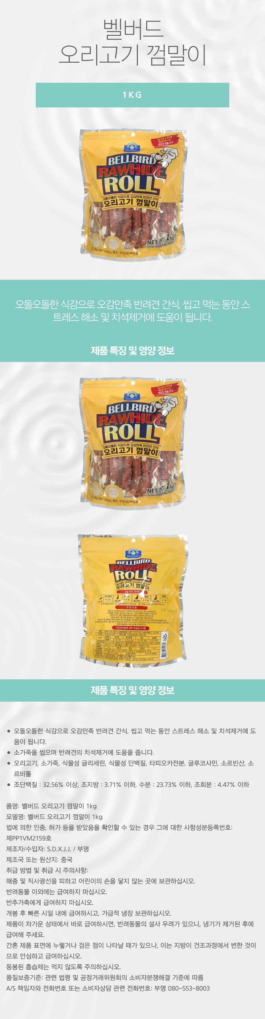 벨버드 오리고기 껌말이 1KG 애견용 개껌 COS
