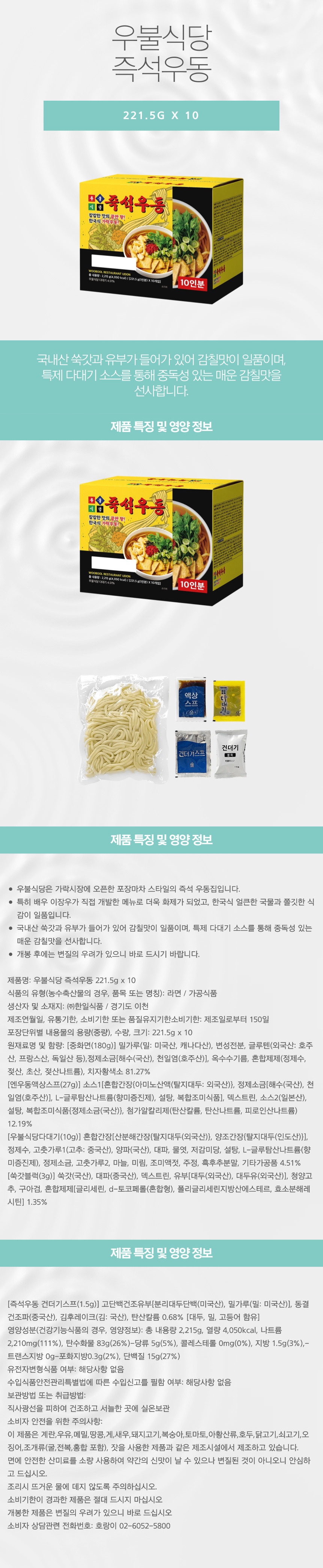 쑥갓(국산), 대파(중국산), 덱스트린, 유부[대두(외국산), 대두유(외국산)], 청양고추, 구아검, 혼합제제[글리세린, d-토코페롤(혼합형), 폴리글리세린지방산에스테르, 효소분해레시틴] 1.35%