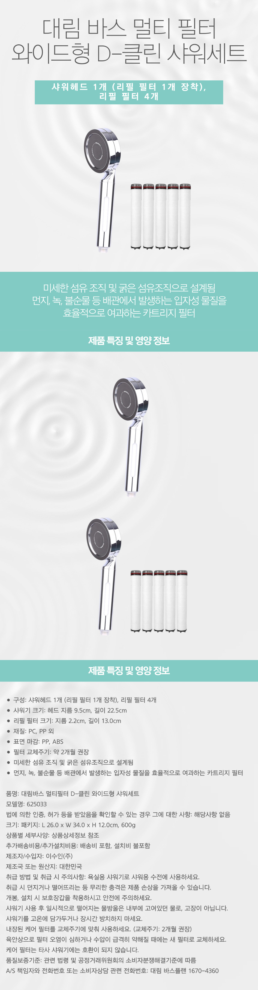 대림바스 멀티필터 D-클린 와이드형 샤워세트 / 625033