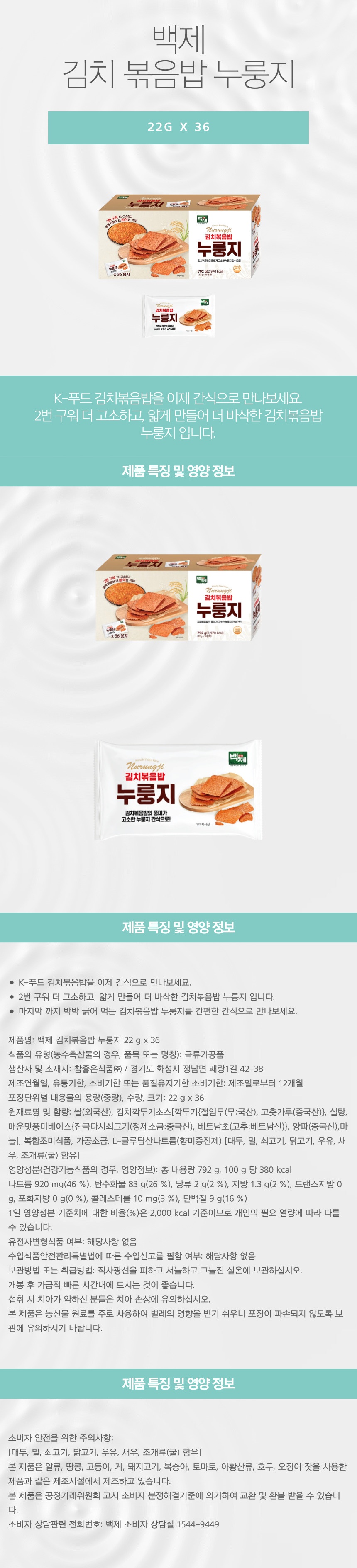 백제 김치볶음밥 누룽지 22 g x 36