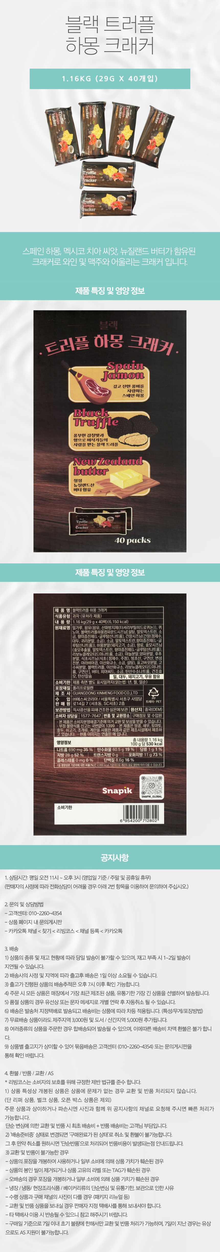 Snapik 블랙 트러플 하몽 크래커 1.16KG 와인 맥주 페어링 안주 COS 타임 세일 11월 21일까지