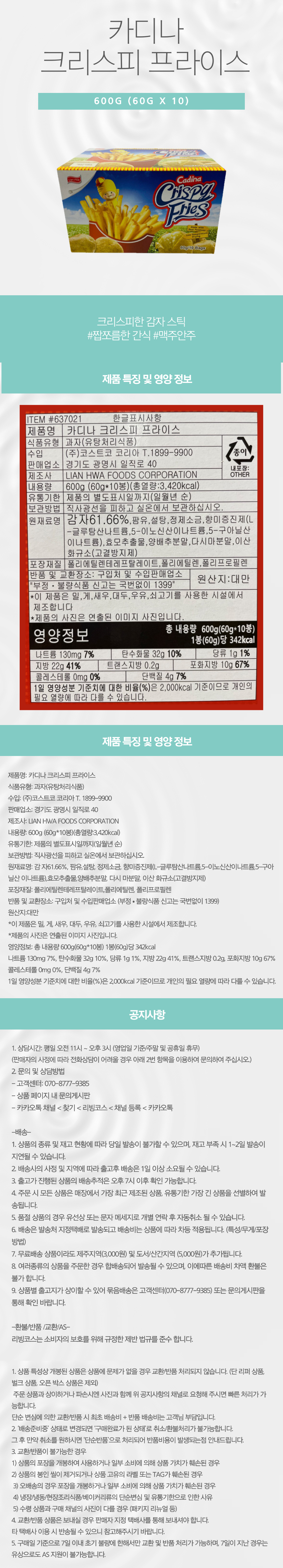 CADINA 카디나 감자 스틱 600G (60G X 10) COS 타임 세일 11월 21일까지