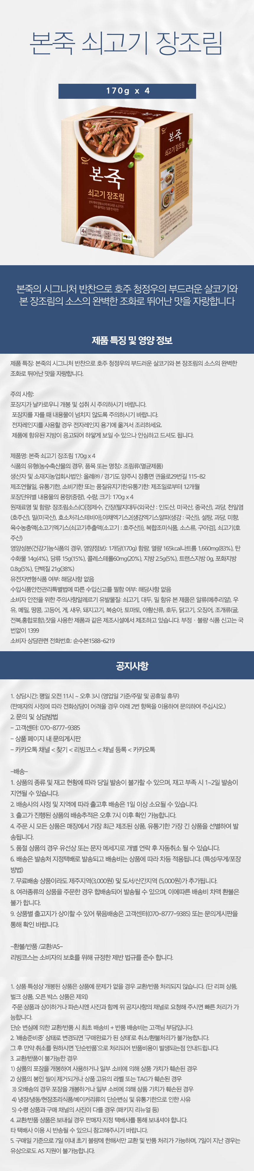 본죽 쇠고기 장조림 170g x 4