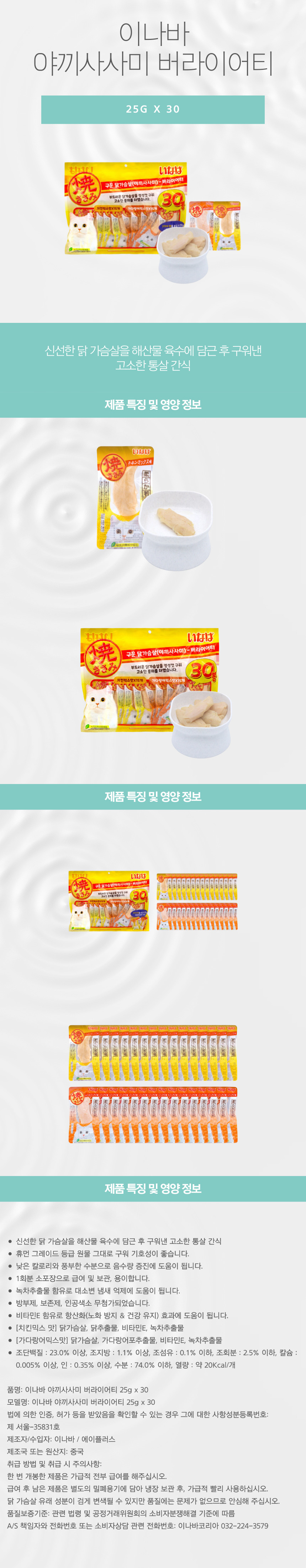 이나바 구운 닭가슴살 야끼사사미 버라이어티 25G X 30 애묘용 간식 COS