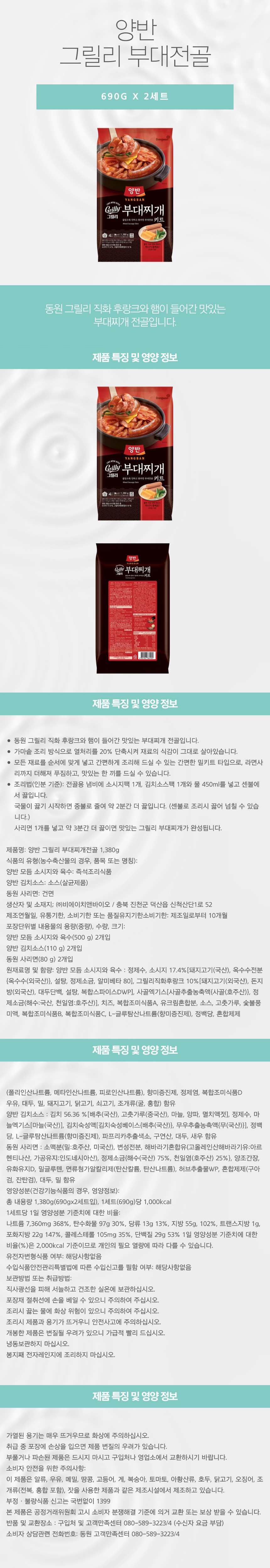 양반 그릴리 부대찌개전골 1,380g